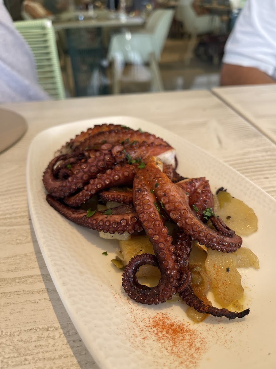 The menu is where Restaurant U Mayol truly comes to life. One of the standout plates, Arroz Porc Negre Y Gamba Roja, captures the essence of the island with its rich flavors and careful balance between land and sea. Equally memorable is the Calamar A la Bruta, a dish that leans into bold textures and authentic preparation. Seafood lovers often gravitate toward the Grilled Octopus Squid, which arrives perfectly cooked and full of character, reflecting the kitchen’s confidence and precision.