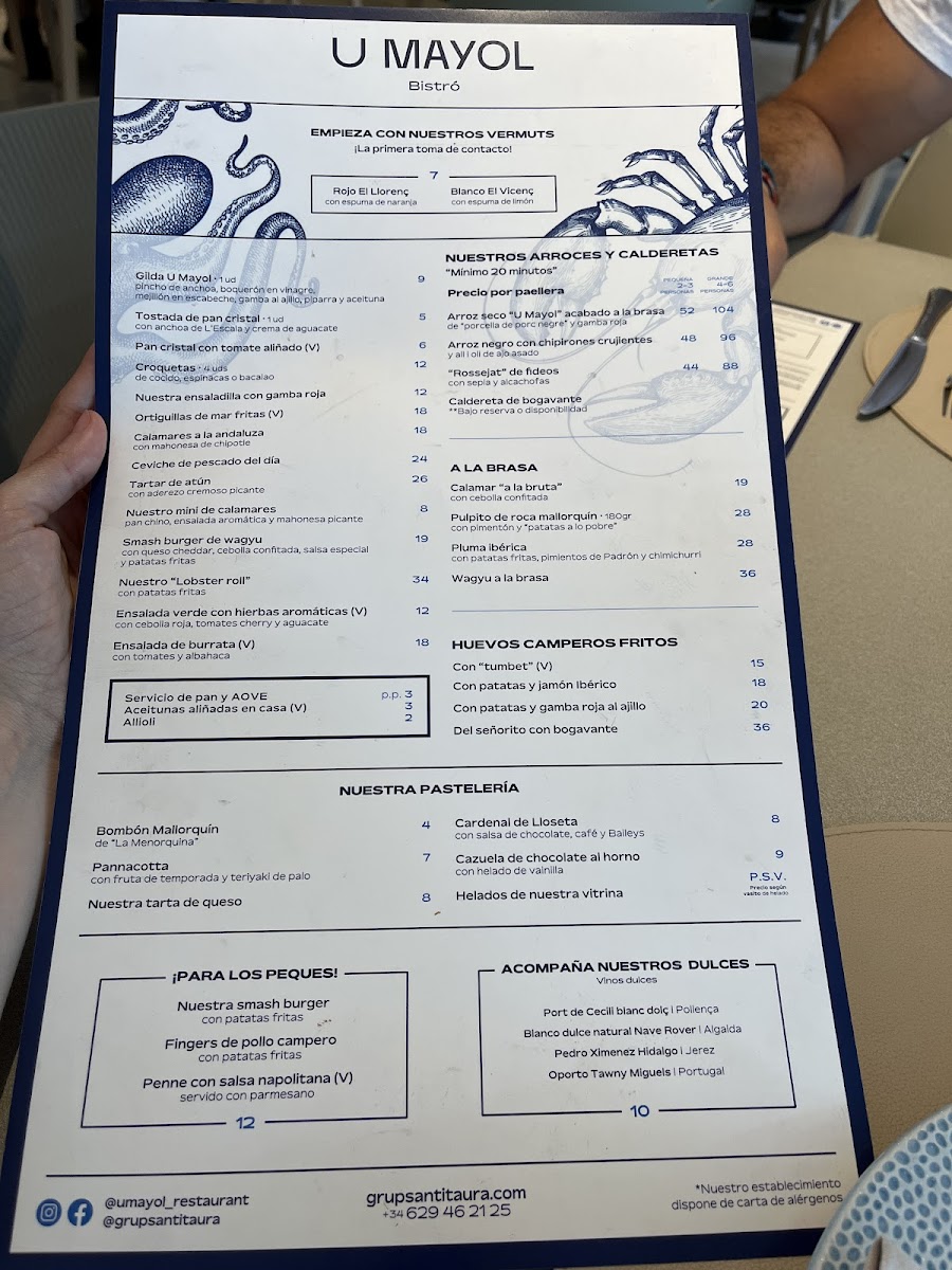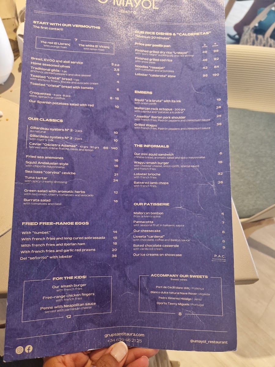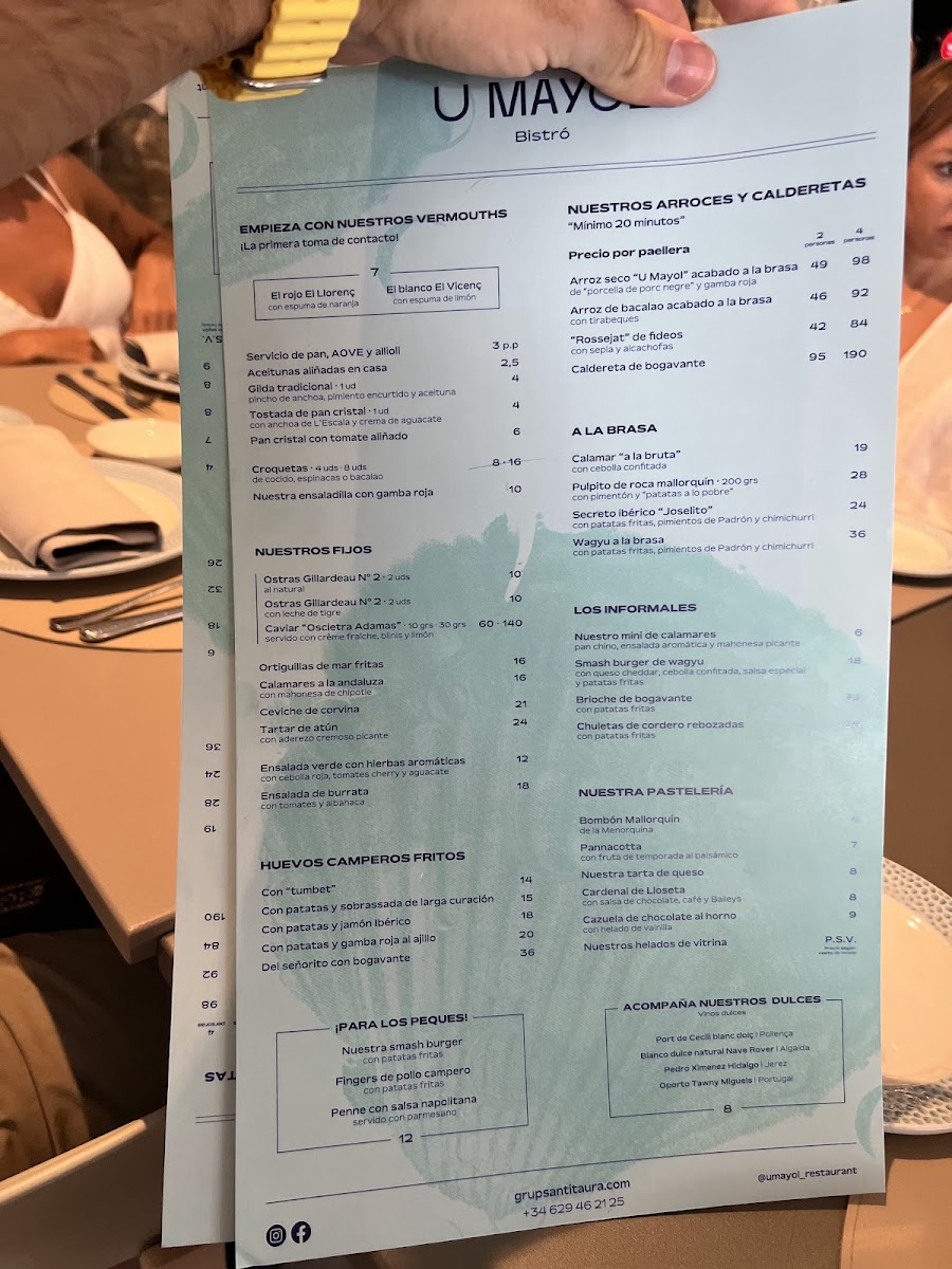 At Restaurant U Mayol, the menu feels thoughtfully curated, balancing Mallorca’s maritime identity with comforting Mediterranean classics. Rice and seafood anchor the experience, with Arroz Porc Negre Y Gamba Roja standing out for its depth-earthy local black pork meeting the sweetness of red prawns in a dish that feels both rustic and refined. Seafood lovers are equally rewarded by Caldereta de Bogavante, a rich lobster stew that captures the essence of coastal cooking, while Fruits de Mer offers a generous, celebratory mix from the sea. The menu highlights local pride through premium shellfish such as Gamba Vermella and Ensaladilla de Gamba Roja, where simplicity allows ingredient quality to lead.